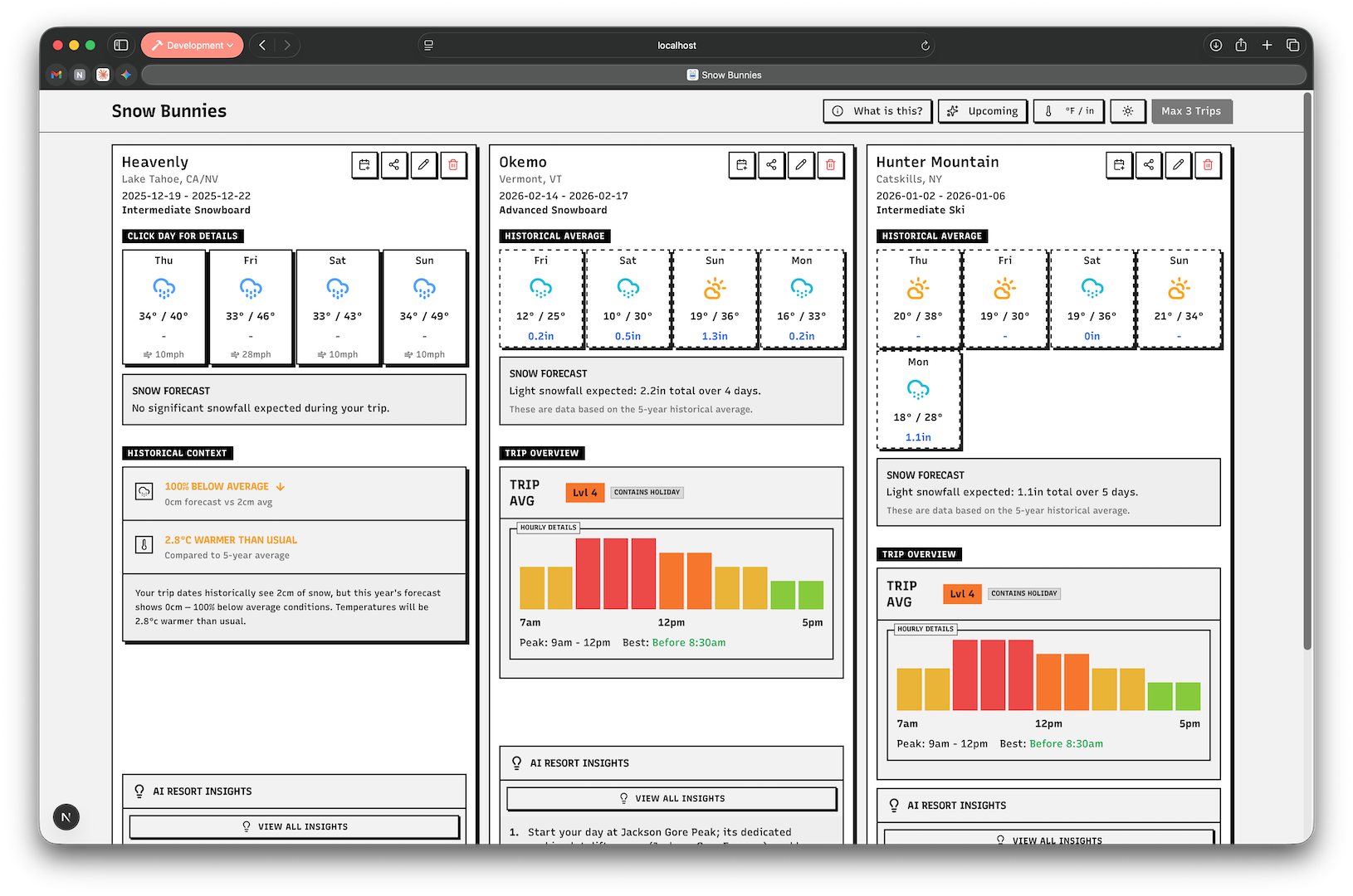 I know what I'm trying to build from the start. A minimalistic, reliable and lightweight ski trip planner and tracker so I can snowboard in peace. I also know what my friends need: a simple interface, AI insights to save research that is based on their skill level and sports preference.